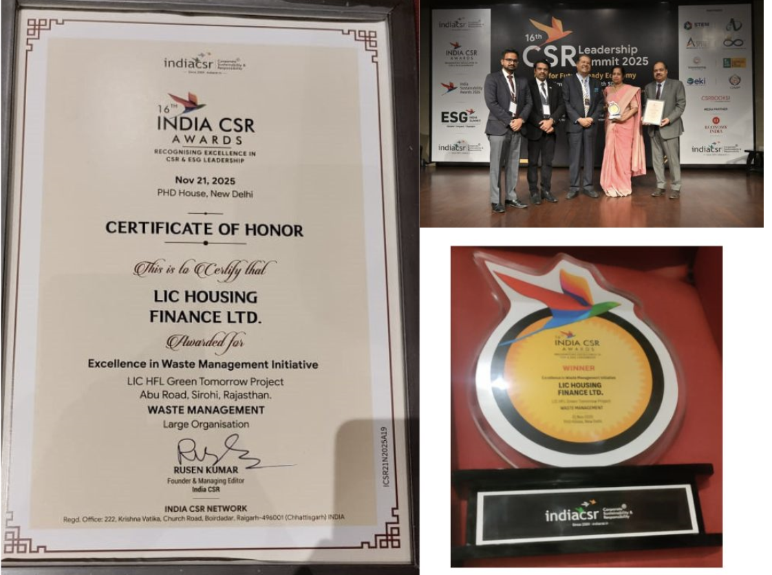 LIC Housing Finance Ltd Green Tomorrow Project at Abu Road ,Rajasthan Wins India CSR Award 2025 for Waste Management Excellence