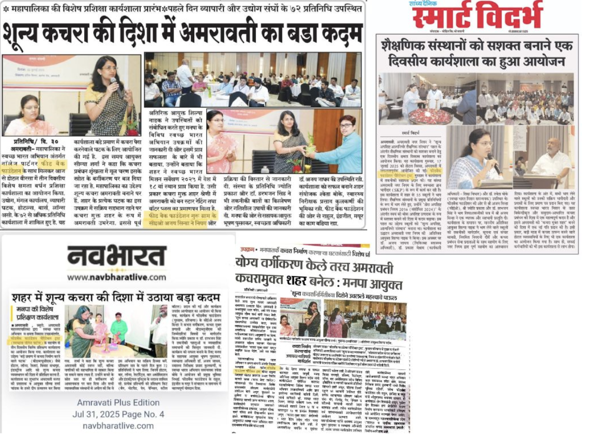 A 3-day Capacity Building and Training Workshop on Zero Waste Atmanirbhar BWGs was organized at Amravati Municipal Corporation, Maharashtra, by Feedback Foundation as the appointed Swachhata Knowledge Partner to the ULB. More than 72 representatives of Bulk Waste Generators (BWGs) attended and actively participated in the workshop. The workshop was inaugurated by Additional Commissioner Ms. Shilpa Naike, with the health officer and all officers from the sanitation department in attendance.​ The sessions were conducted by Feedback Foundation CEO Mr. Ajay Sinha and senior trainers from the organization.