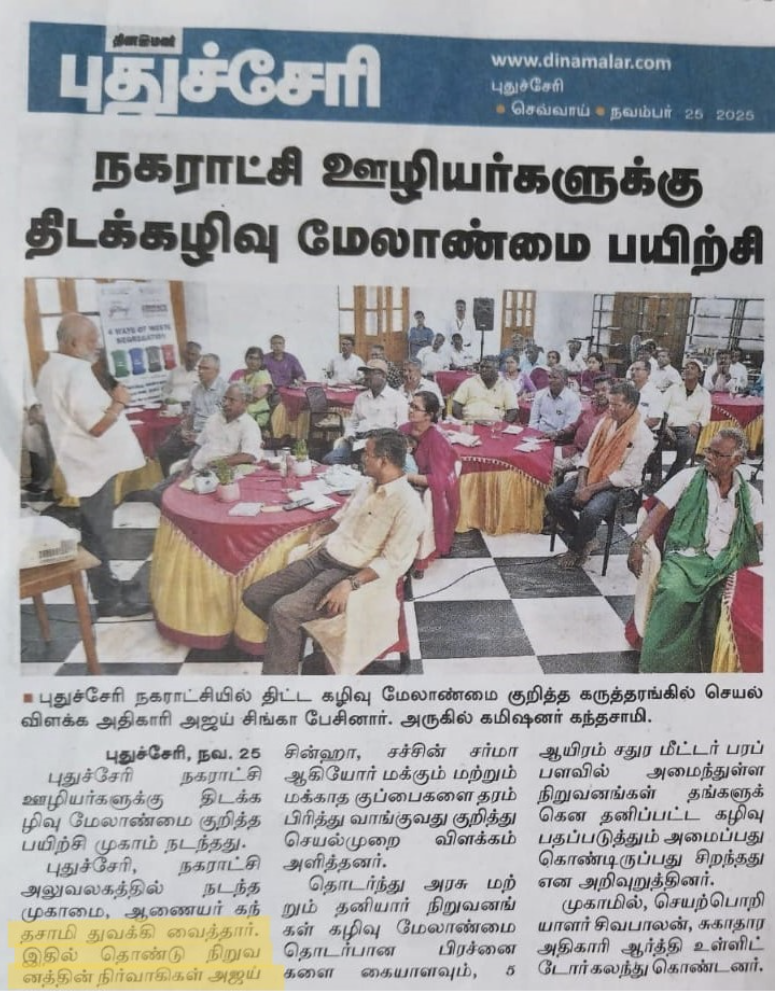 Solid Waste Management Training for Puducherry Local Administration Employees