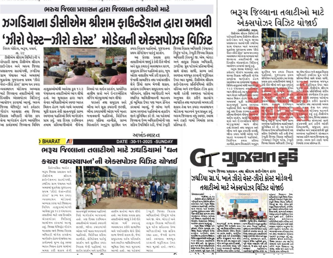 Bharuch District Administration, in collaboration with DCM Shriram Foundation and Feedback Foundation, organized a 3-day exposure visit for 150 Gram-Panchayat Talatis, GP secretary, TDO and administrative officers from various talukas to study Gujarat's pioneering "Zero Waste-Zero Cost" rural solid waste management model at Jagadia Gram Panchayat design, constructed and operated by Feedback Foun dation. Held from November 27-29, 2025, under the guidance of District Magistrate Gaurang Makwana and District Development Officer Yogesh Kapse, the program advanced Swachh Bharat Mission goals through hands-on learning. Talatis participated in live demonstrations on household wet/dry waste segregation, low-cost composting from wet waste, decentralized processing, safe rural disposal methods, and operations of Gujarat's first Sanitation Park. Interactive sessions emphasized community behavior change, local ownership, and high-impact, low-cost sustainability practices. Deputy District Development Officers Nikunj Patel and G.M. Borad, Taluka Development Officer Dhruv Patel, and DCM Shriram Foundation's Sandeep Varia and Rajnikant Tandel shared insights on collaborative models. The initiative promotes scalable village-level sanitation for cleaner, healthier rural Gujarat.